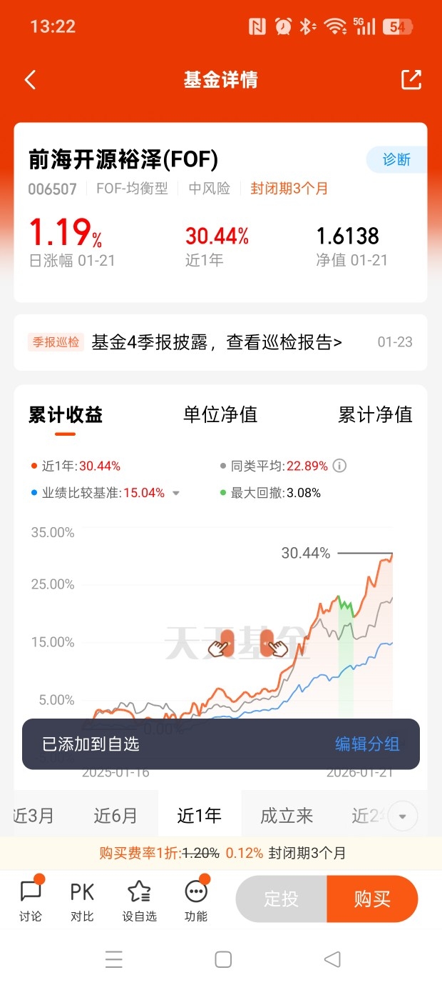 我选择$前海开源裕泽(FOF)$ 的期待是:现在市场上的基金数量太多,市场行情变化也是非常快,作为普通投资者往往难以抉择,而这只基金的目标策略是通过二次分散来平滑风险,并且进行多项资产配置,过去的业绩表现也不错。所以,我想通过它来实现资产的长期稳定增值。@前海开源基金