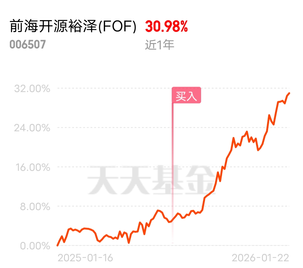 咱投资基金,最盼的就是能稳稳当当赚钱,让手里的钱越来越多。前海开源裕泽(FOF)就承载着我这样的期待。它通过专业团队挑选多种基金组合投资,就像把鸡蛋放在不同篮子里,降低单一基金的风险。我希望它能在不同市场环境下,灵活调整配置,不管是股市波动还是债市起伏,都能给我带来持续稳定的收益,让我的资产像滚雪球一样慢慢壮大。