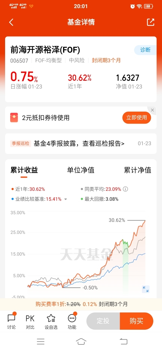 我选择$前海开源裕泽(FOF)$ 的期待是专业、省心的同时带来稳定的超额收益。