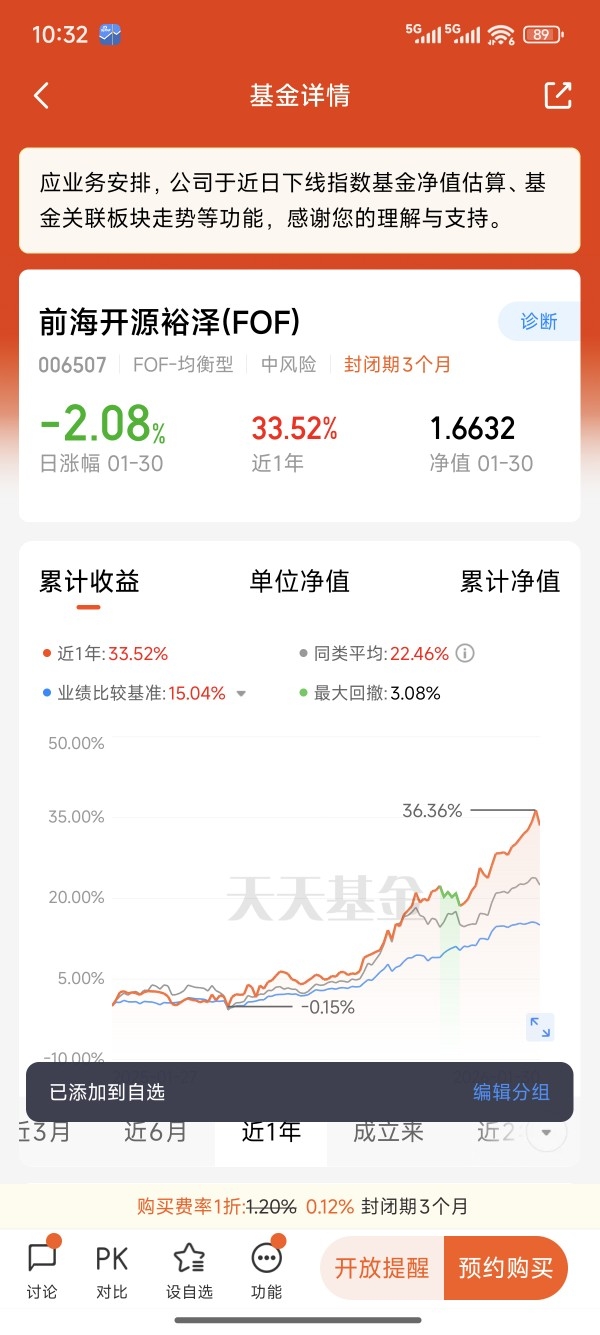 第二,费率不是唯一考量。如果因为节省0.3%的费率而选择单只基金,但最终因为择时错误或选基失误导致亏损,那损失远大于节省的费用。裕泽FOF近一年31.97%的收益率,即使扣除双重费用,实际到手收益依然可观。