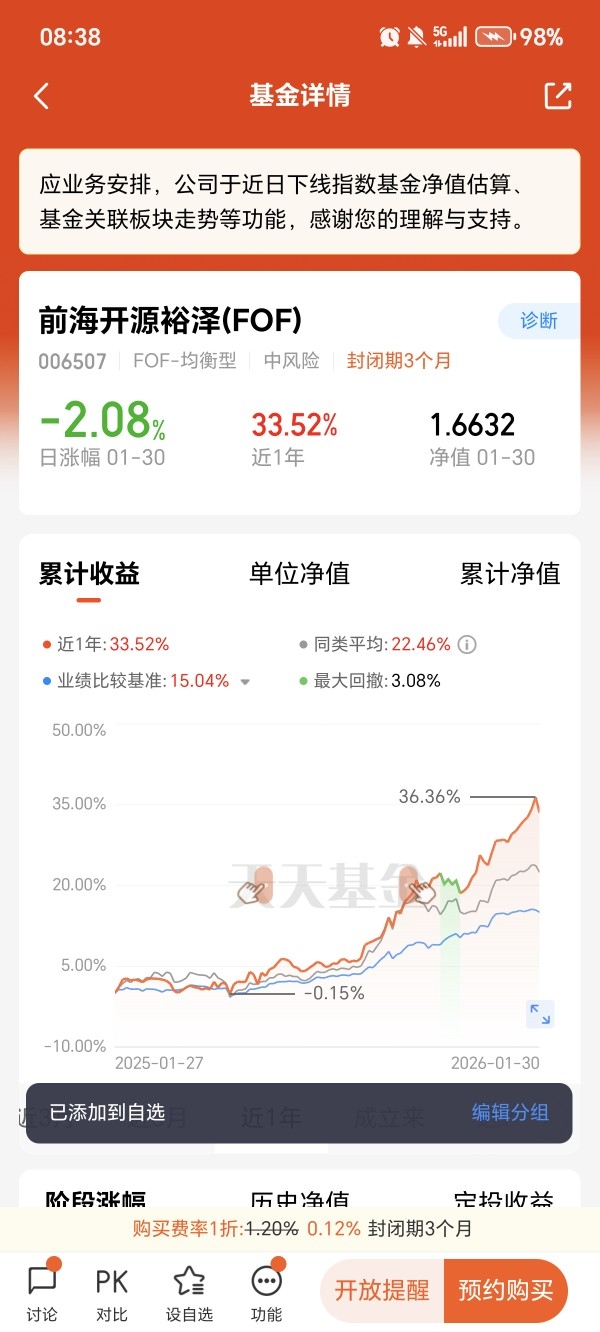 我选择$前海开源裕泽(FOF)$ 的期待,一直想找一款省心、稳健、适合长期持有的产品。直到了解到前海开源裕泽(FOF),我终于找到了理想的投资标的。它作为专业的FOF产品,依托量化策略进行科学配置,不盲目跟风热点,始终把风险控制放在首位,注重权益资产的安全边际,风格沉稳务实,特别适合我这样厌恶波动、追求稳健收益的长期理财用户。更难得的是,它近一年收益率突破28%,在同类产品中稳居第一,业绩与稳健性兼具,打破了“稳健就不赚钱”的固有认知。选择前海开源裕泽(FOF),对我来说不仅是选一只基金,更是选择一种轻松、靠谱的理财方式,不用再为选基纠结,不用再为短期波动焦虑,把专业的事交给专业的团队,自己只需耐心陪伴长期价值成长。我坚信,在严谨的策略和优秀的管理下,这款产品会持续带来稳定回报,成为我长期理财路上的安心之选。