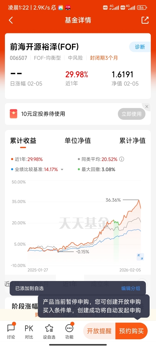 我选择前海开源裕泽(FOF)(006507),核心期待是:在震荡市中用专业资产配置稳守增值、降低波动、省心长期持有,做普通人的“投资避风港与增长引擎”。