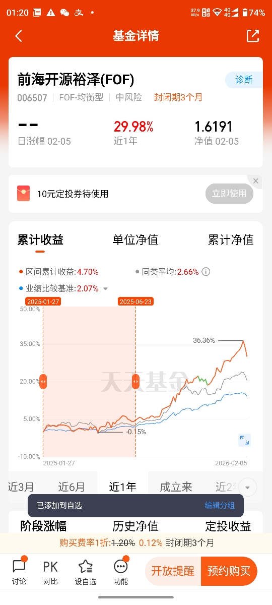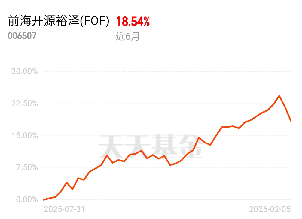 我选择前海开源裕泽(FOF),是把它当作震荡市的稳健配置底座,也是对专业资产配置与长期稳健增值的期待。当前市场轮动快、波动大,个人选基容易踩节奏、押错赛道,而FOF通过一基多配、二次分散,把风险进一步摊薄,更适合追求稳稳收益的普通投资者。