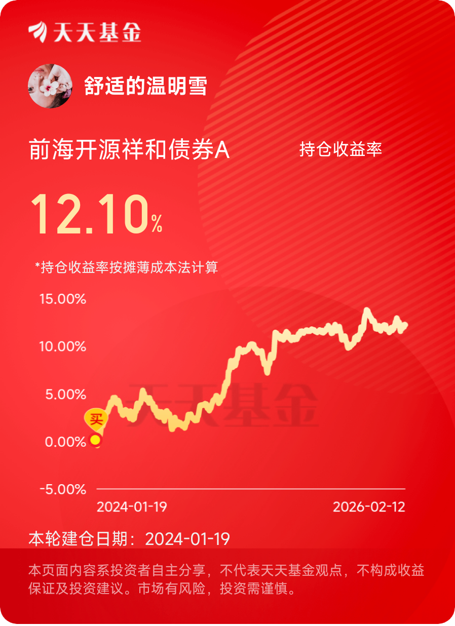 对我来说,投资不求刺激,只求靠谱。前海开源裕泽(FOF)解决了我选基难、拿不住、风险高的痛点,是适合普通人的稳健理财工具。我会耐心持有,期待它用平稳的业绩,帮我实现财富的长期稳健增长。$前海开源裕泽(FOF)$ #晒收益#