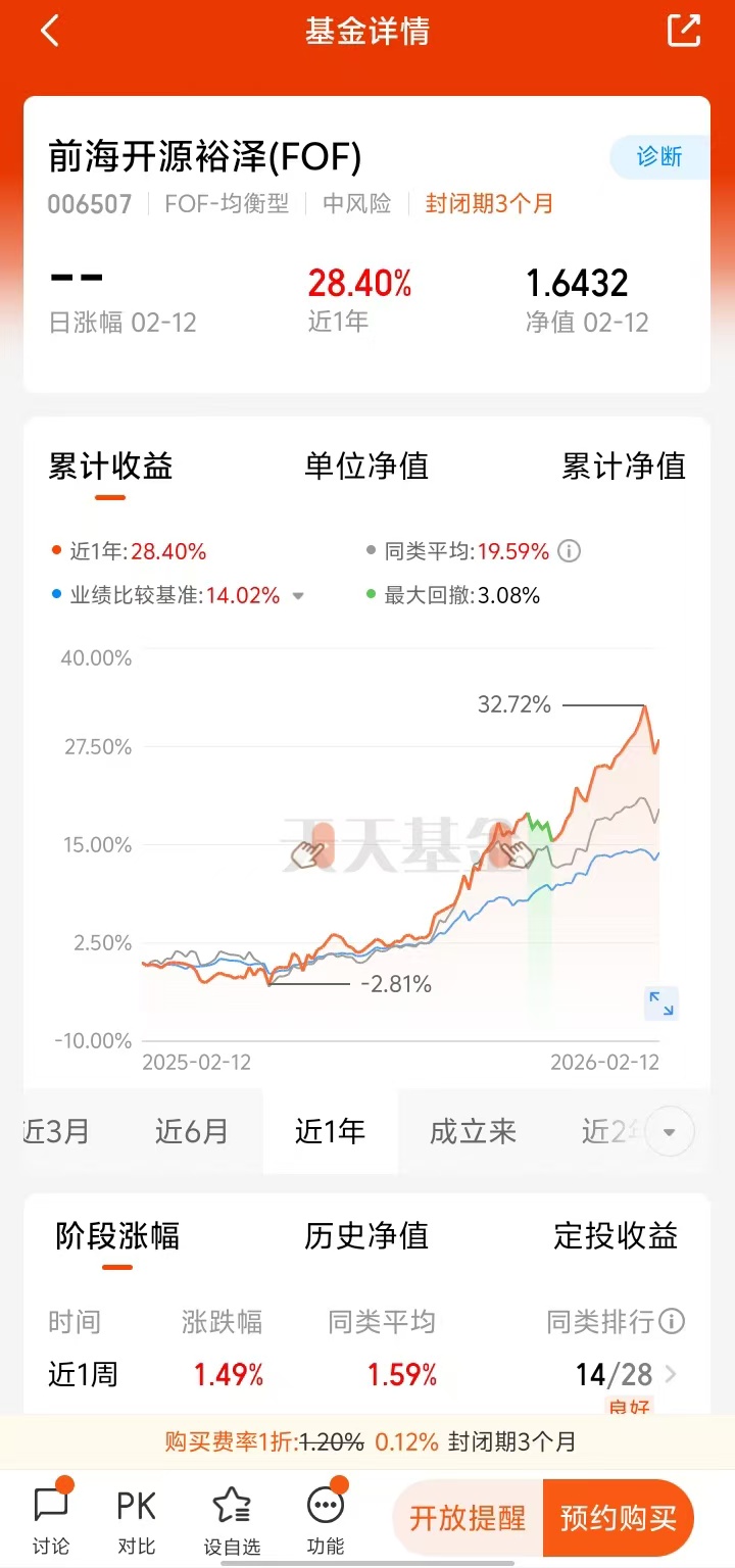 风险收益比是衡量投资表现的重要指标,高收益伴随高风险,而量化策略通过模型优化和风险控制,能够在一定程度上平衡这两者。该策略可能在市场下跌时保护本金,在市场上涨时获取收益,从而实现更优的收益结构。对于追求稳健收益、注重长期投资的投资者来说,前海开源裕泽(FOF)值得关注。@前海开源基金
