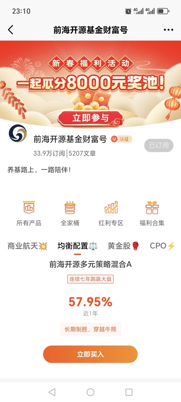 3)前海开源裕泽(FOF)(006507)这款基金产品自2018年11月至今,获得的累计收益率为64.32%,折合成年化复合收益率为7.03%,相当优秀。