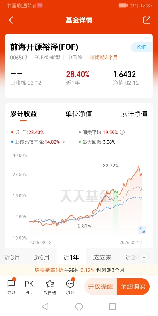 我选择$前海开源裕泽(FOF)$ 的投资心得,当然是它的业绩,它的长期业绩是很稳定的,回撤也是很小的,这类基金正是投资者所喜欢的基金。
