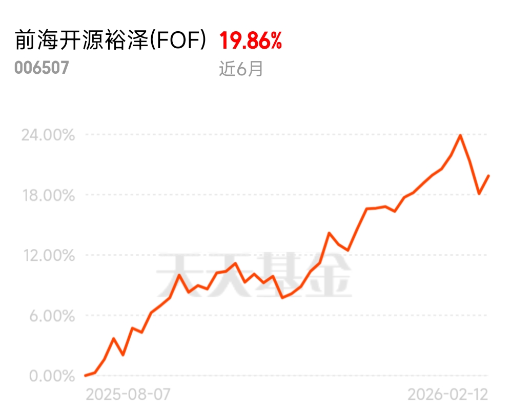 单一基金或赛道很难持续赚钱,普通投资者既怕踏空又怕深套。前海开源裕泽FOF主打股债商品多元配置,以债券做底仓稳波动,搭配权益与黄金等低相关性资产,用分散化降低回撤,用专业择时把握机会,完美匹配当下“先稳后赚”的配置需求。它不赌单一方向,而是靠大类资产轮动与基金优选,在不同市场环境下都能找到收益支点,比自己盲选基金更可控、更可持续。