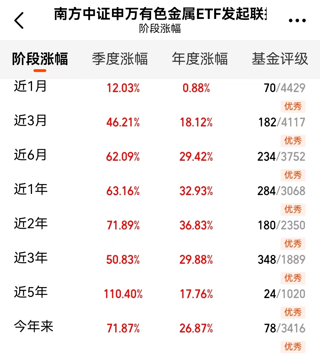 这两天大家讨论最多的话题就是降息了,这对有色金属板块可是实实在在的大利好!市场上流动性更充裕,那些用外边钱计价的大宗商品自然就容易涨。$南方中证申万有色金属ETF发起联接A$(004432)最近一个月就涨了10%多,抓的就是这波行情。周期行情来了,借道基金整个板块比自己挑股票省心多了。这个基金近一年都涨了70%多,感觉势头挺好。有点闲钱的话,考虑通过这样的基金参与一下,也算是跟上这波宏观变化的节奏。#指数操盘手集结令#