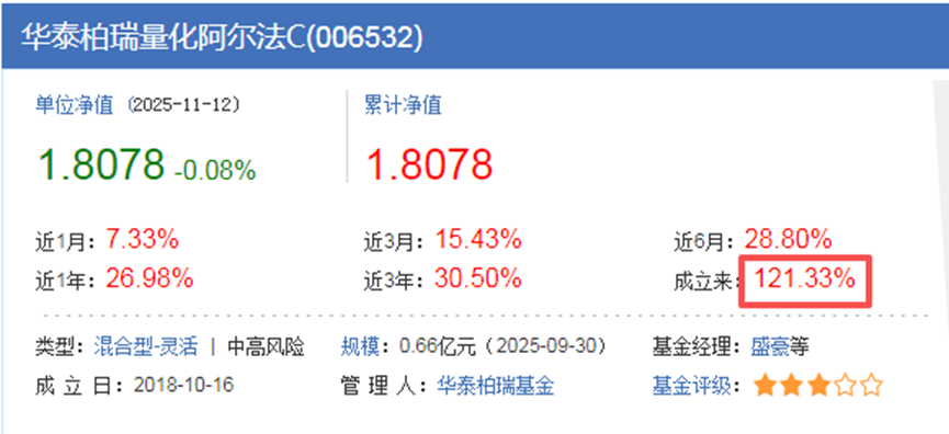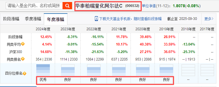 偶然发现一只基金:华泰柏瑞量化阿尔法(006532),自2018年成立以来,2019至2024,连续6年表现不错,2025年同样是表现良好!