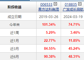 $广发成长启航混合A(OTCFUND|018835)$近一个月上涨11.85%,近三个月上涨45.24%,近半年上涨48.31%