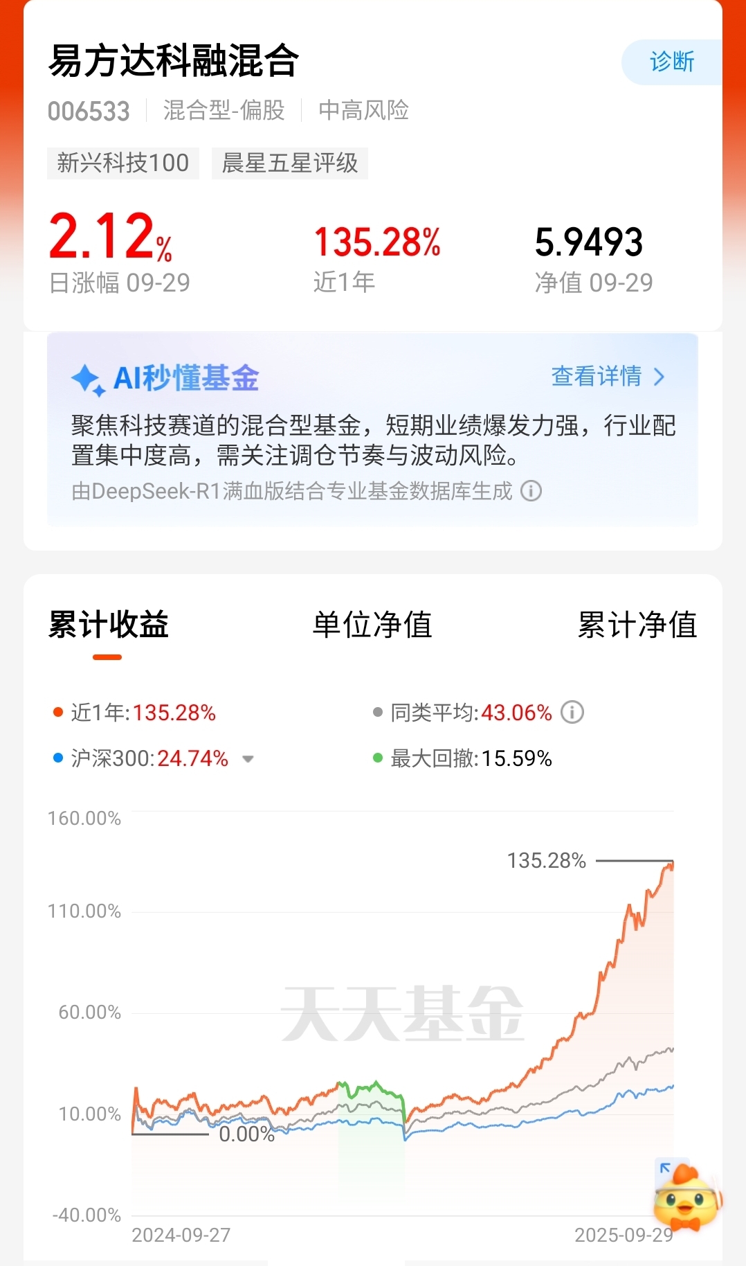 最近科技板块涨势不错,但是细分板块多,相比单一赛道,还是均衡配置的更有优势,比如$易方达科融混合(OTCFUND|006533)$不仅买了科技,还买了反内卷相关的新能源相关的,深度参与科技、新能源、军工轮动配置,夏普比率优秀,可以说是成长里的均衡之选。