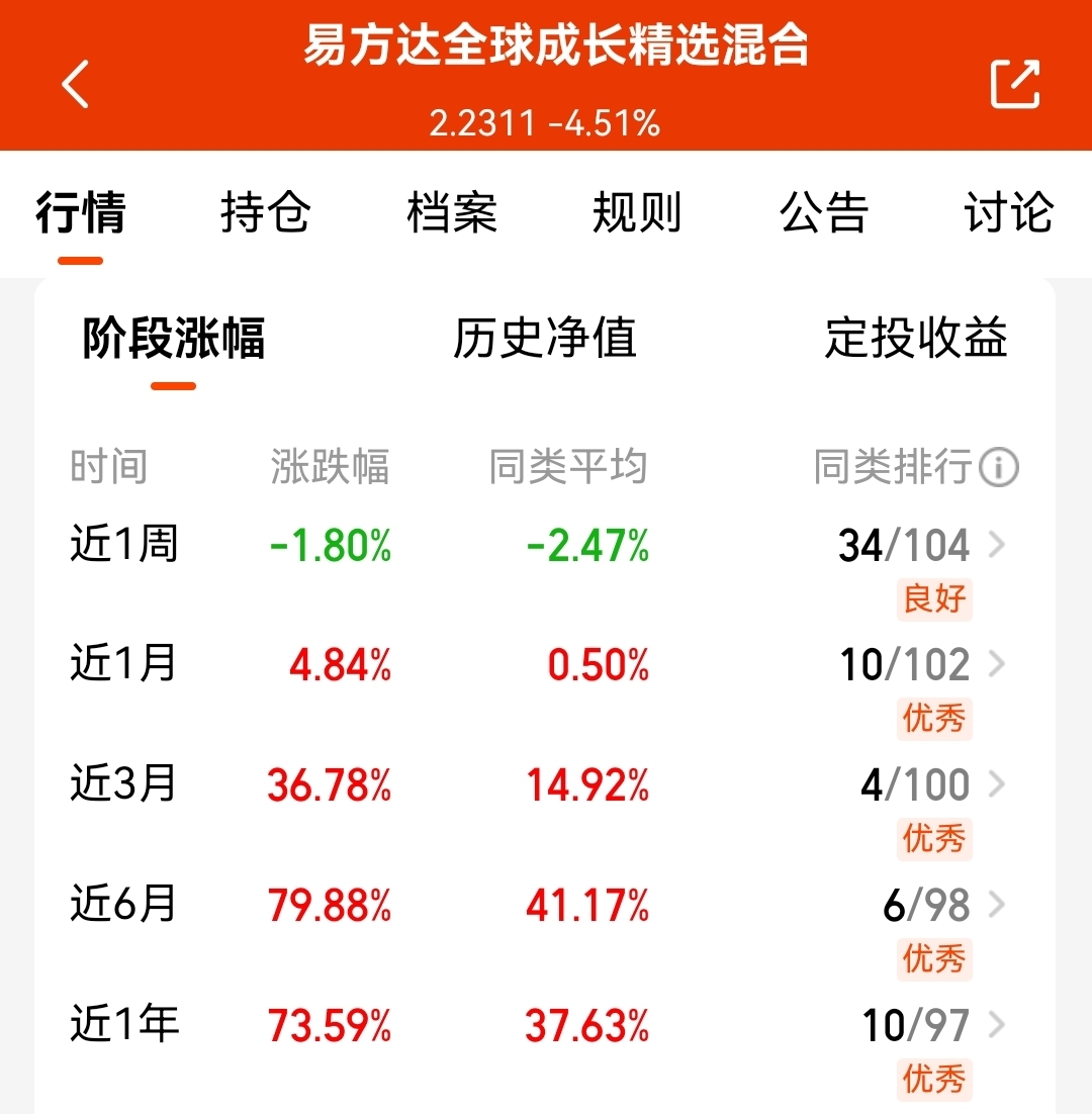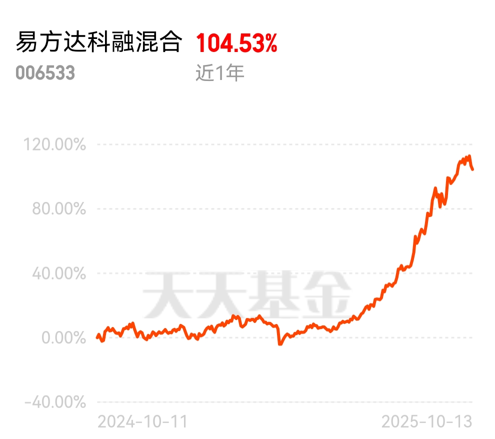 目前来看,多数科技股连续大跌后,底部性价比已经有了,我觉得短期反弹可期,这支$易方达科融混合$ 目前也是持仓CPO、消费电子等各科技板块,近3个月收益65.50%,近1年收益还有104.53%,相对多数板块,还是有一定超额收益的;