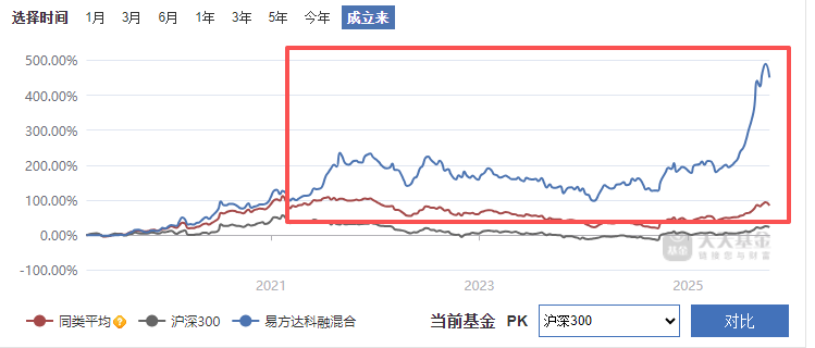 从业绩上看,和同类产品相比,$易方达科融混合(OTCFUND|006533)$这基近期表现还是蛮优秀的:近3个月57.4%,基本没有受到行情波动的太大影响;拉长时间来看,长期表现也非常亮眼。其中,近2年收益率132.42%,同类平均仅为28.34%,沪深300为23.9%。近5年排名1/1213,夏普比率3.21,收益风险比也优于大多数竞品;