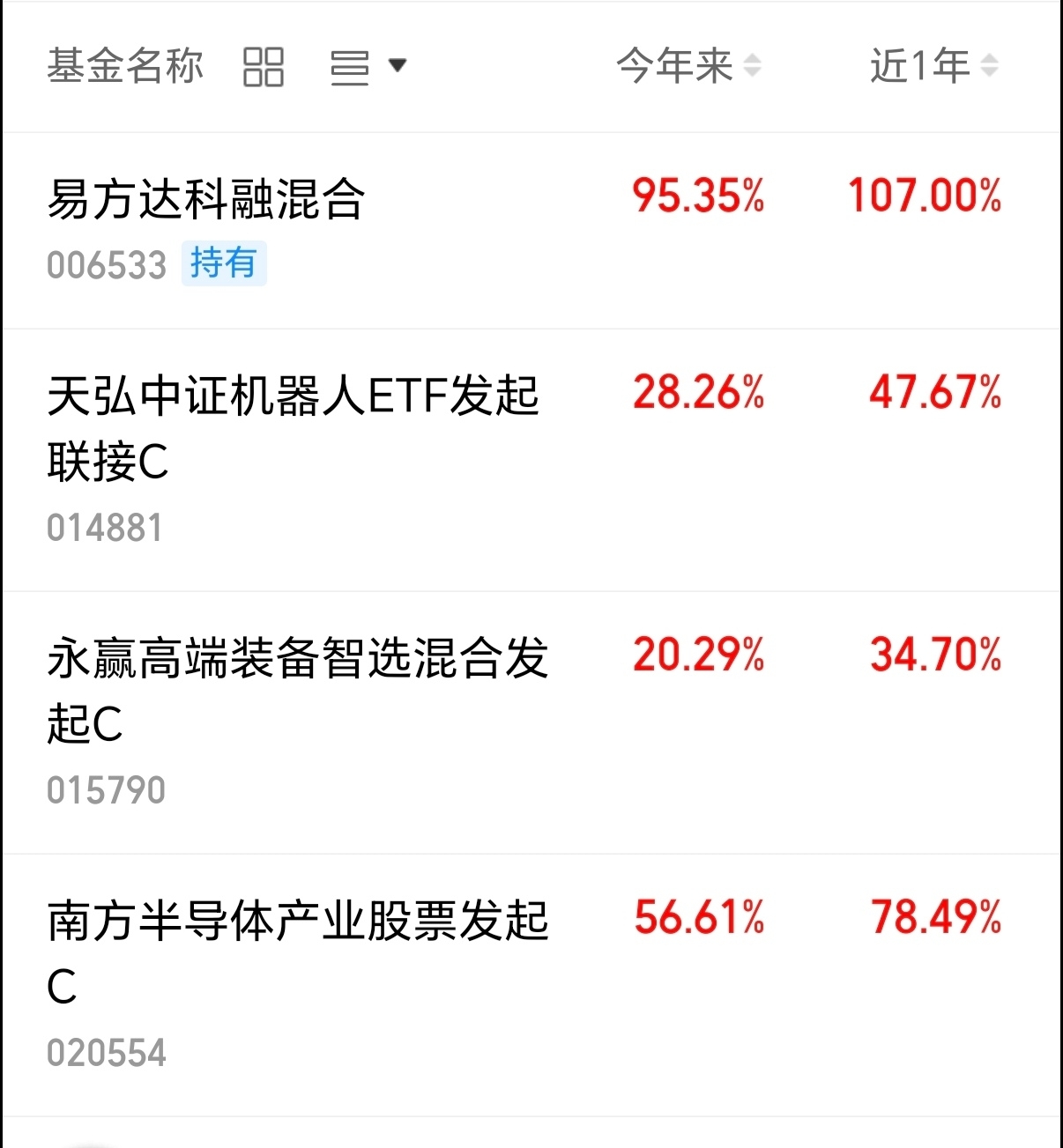 今日大盘出现全面回调趋势,当前成长行情也轮动极快,而我们想要捕捉住市场趋势,跟上这波科技牛市行情,还需均衡配置持仓,我比较看好$易方达科融混合$ 深度参与科技、新能源、军工轮动配置,近一年涨幅高达107%,收益远超同类平均水平,并且持有结构里机构占比高,说明对其的认可与喜爱,趁着近期的回调低位,我也果断布局起来,期待接下来的反弹力量啦!
