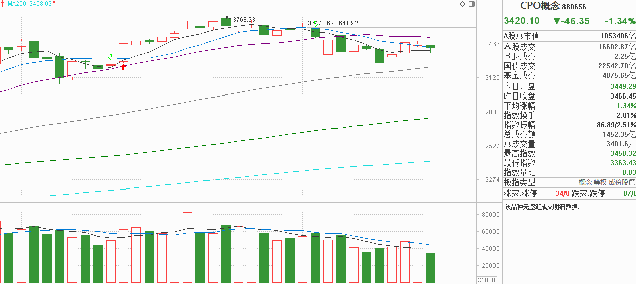 CPO周二大阳线突破20天线后昨天窄幅震荡,今天低开低走回踩5天线,又回到周二CPO启动的位置。要知道CPO近期宽幅震荡走箱体,10月14号调整后一直围绕着一个小平台震荡,周二的中阳反弹正是基于平台支撑出现的,现在再次回到这个位置,在技术上我认为是有支撑的。此外,市场成交量继续萎缩,抛压越来越小,也告诉我要把握风格切换的机会,10月至今是红利最强,下一阶段变盘重回科技方向是有可能的。