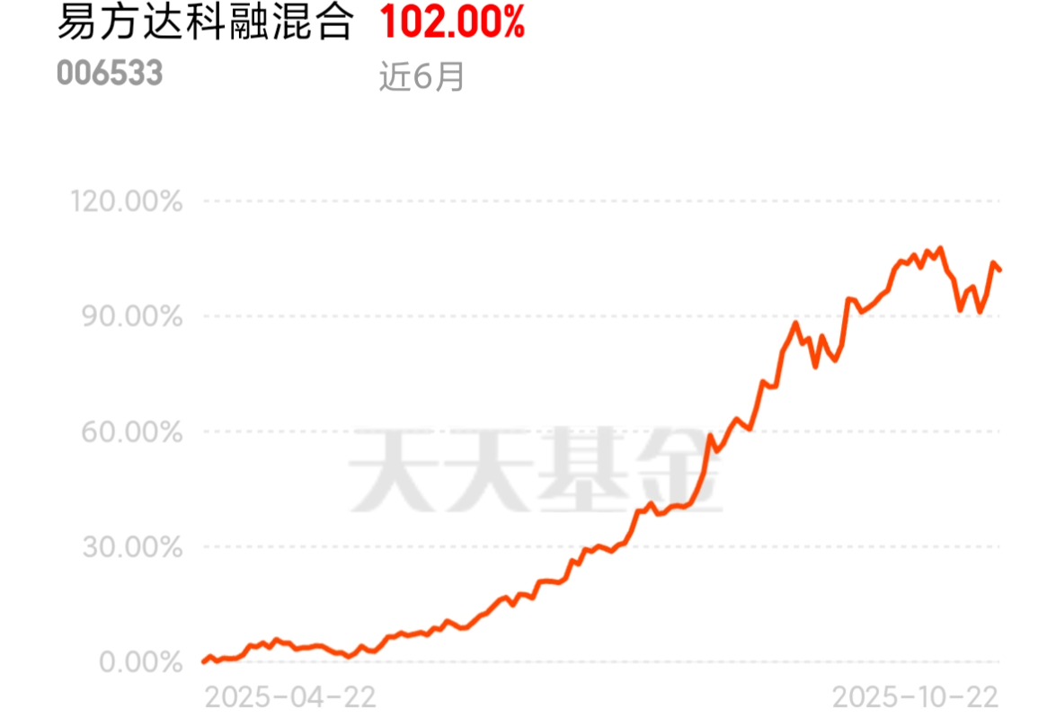 看了一下,重仓科技的 $易方达科融混合(OTCFUND|006533)$ 回撤控制得要好很多,近三个月最大跌幅8%,波动小同类,更加稳健。