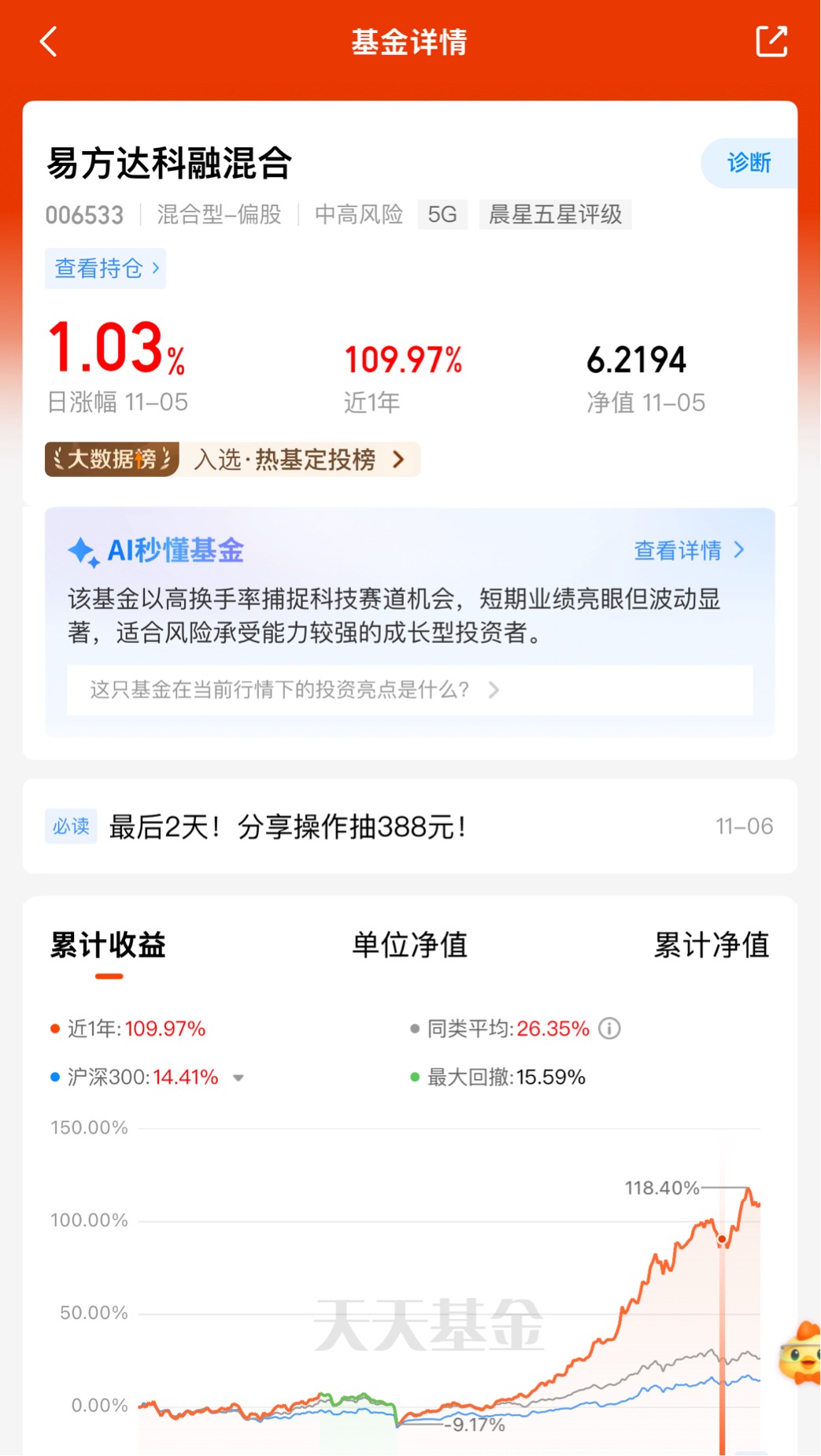 $易方达科融混合$ 采取均衡配置策略,深度布局科技、新能源及军工等多条景气赛道,通过A+H双市场挖掘优质标的。
