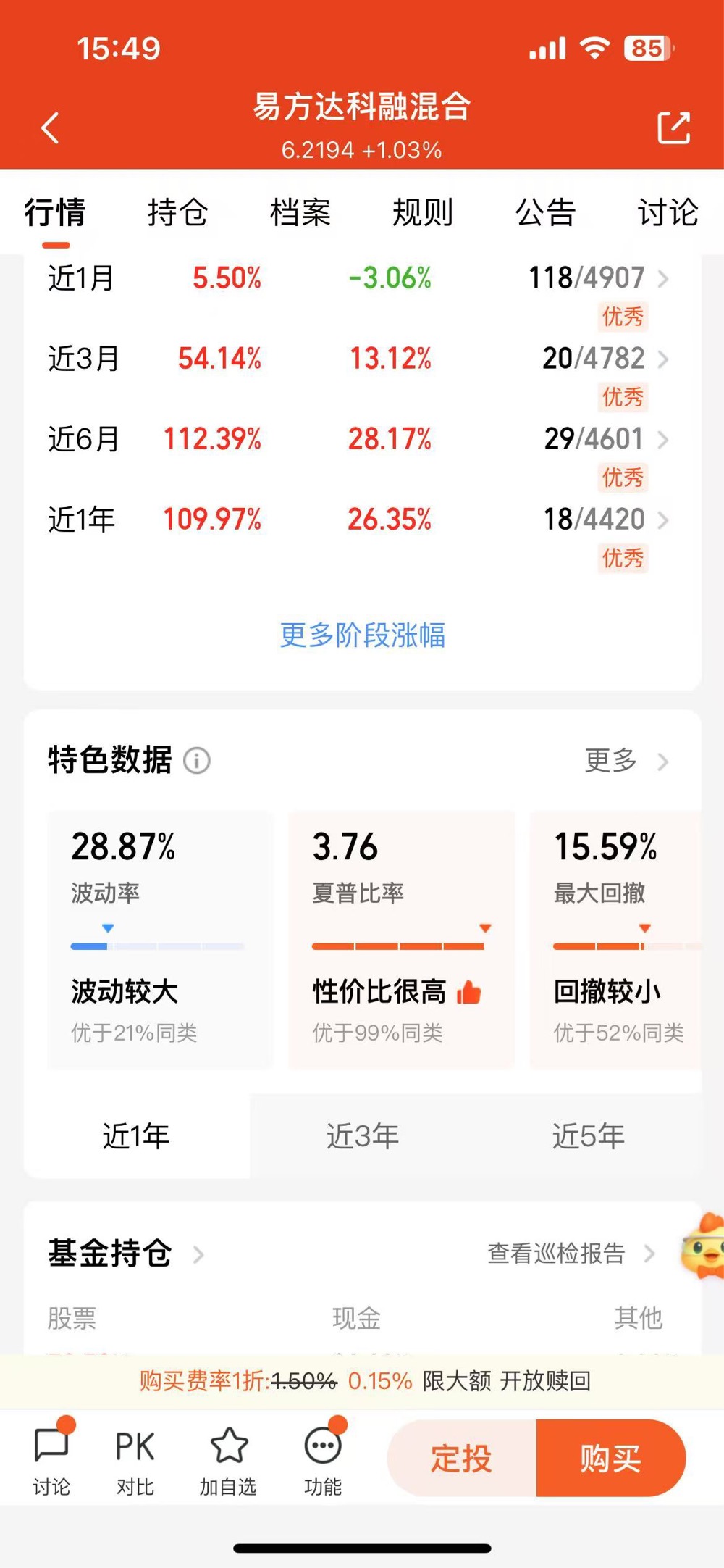 沪指今天再冲近10年新高,市场表现不俗,但当下行情里,单一持仓风险大,均衡配置才靠谱。$易方达科融混合$ 持仓覆盖科技、新能源、军工,能有效分散风险,适配现在的市场节奏。它不仅回撤控制得好,业绩也稳定,还有高机构持有背书,专业认可度拉满,很契合当前市场风格,我准备入手,长期看好后市!