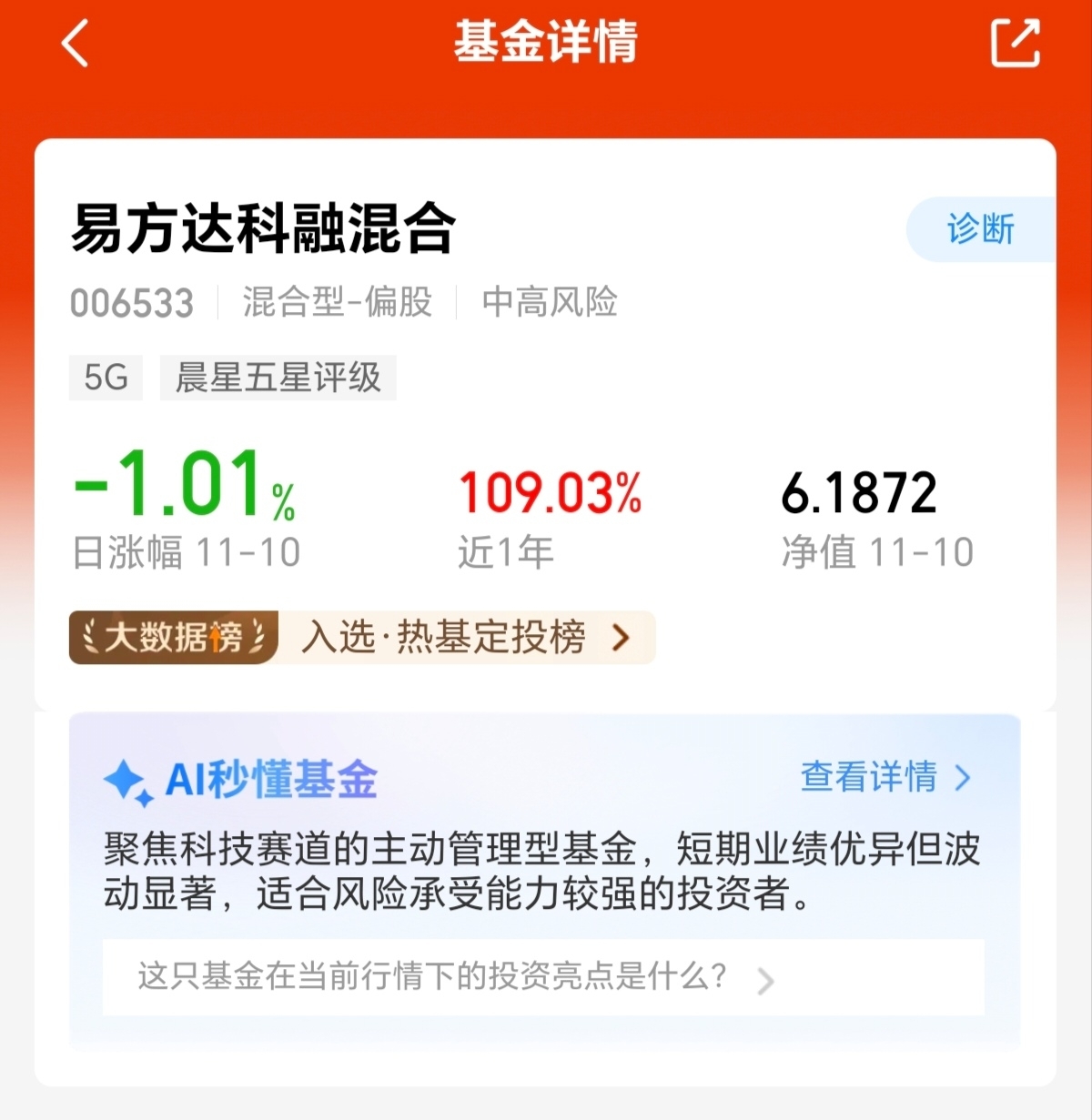 今日A股行情再次震荡回调,科技赛道明显波动,同时当前板块切换轮动加速,单一的持仓配置,还是很难把握市场节奏呢,不过我发现$易方达科融混合$ 不但聚焦于科技、新能源、军工等热门赛道,同时业绩远超同类平均涨幅,基金经理也特别擅长调仓操作,从而获取超额收益显著,我准备慢慢定投起来啦!