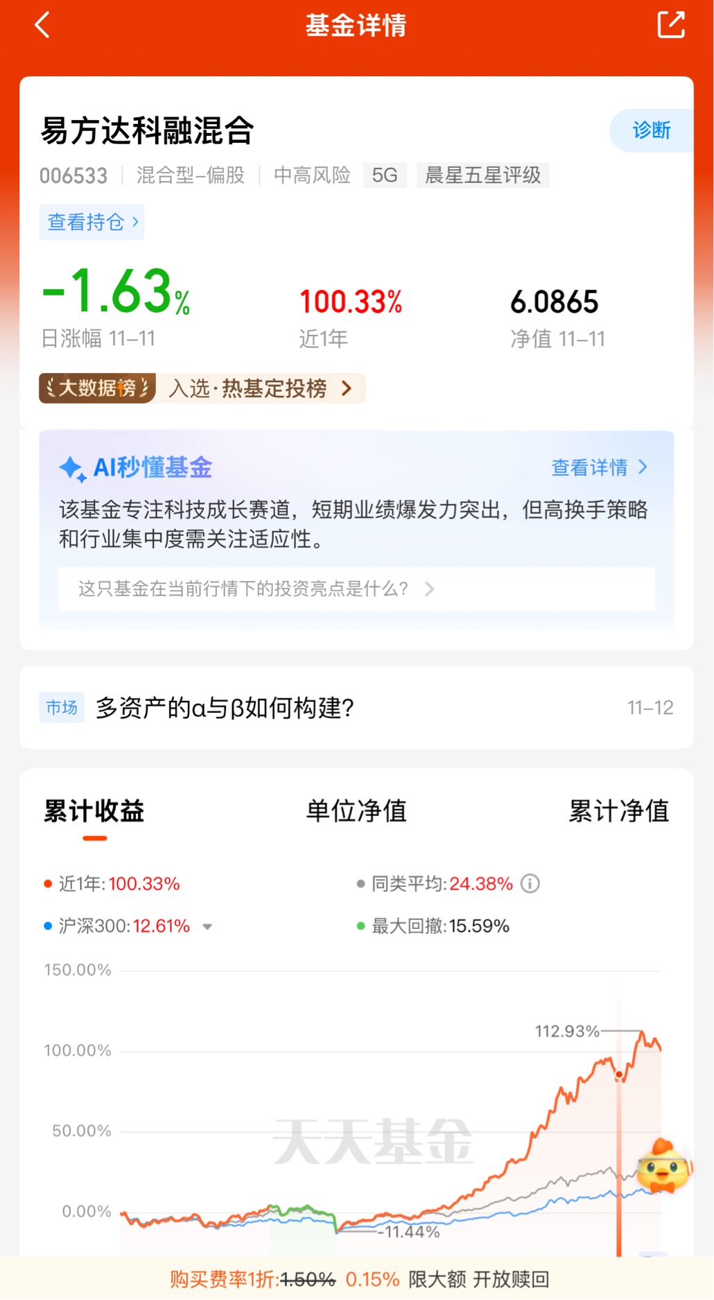 在当前成长板块快速轮动、单一科技赛道波动加剧的市场中,$易方达科融混合$ 展现出攻守兼备的特性。