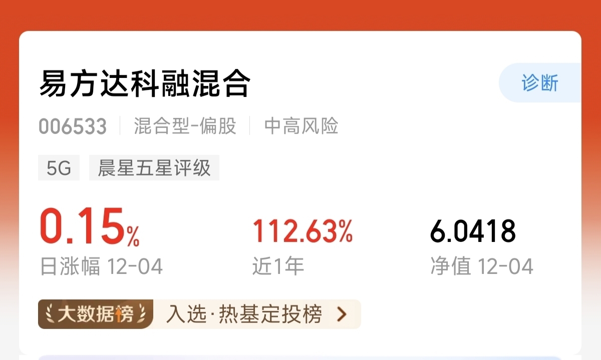 三大指数今天探底回升。再度迎来了机体修复。在本轮修复中来看,还是科技表现的比较强。$易方达科融混合$ 这只主动的科技混合基金。聚焦科技成长赛道。持仓整体均衡,长期业绩表现的稳定性一直不错。昨天上涨了0.15%。近一年涨幅112.63%。长期稳定盈利的能力好。而且主动的科技混合基金。遇到波动回撤控制的也是比较稳定,我看好基金长期的成长表现。