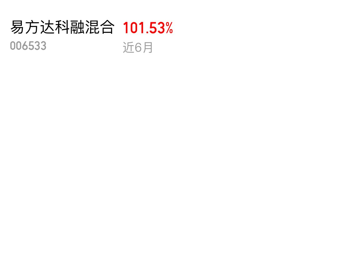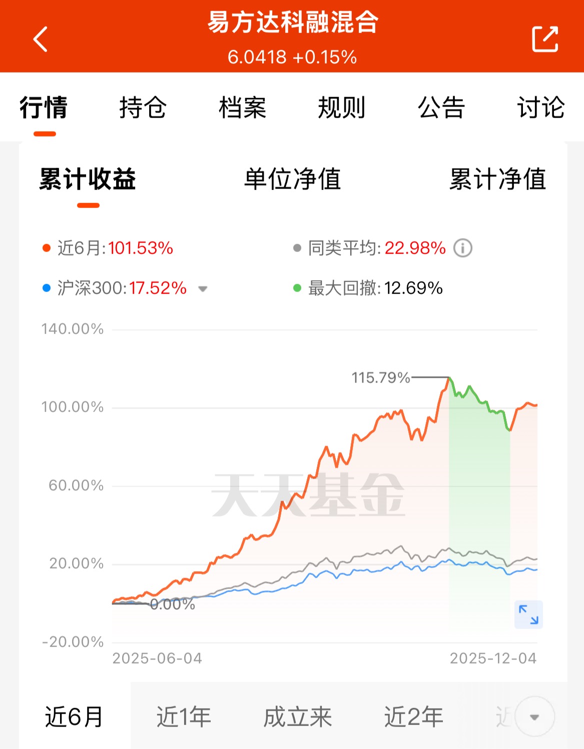 $易方达科融混合$ 深度参与科技、新能源,军工轮动配置,夏普比率优秀,A股港股一起投资,可以说是成长里的均衡优选,而且回撤也控制得好,近六个月收益101.53%,同类平均收益率在22.98%,同一个投资策略的$易方达科讯混合$ 最近回撤也控制得特别好,这个是聚焦A股。
