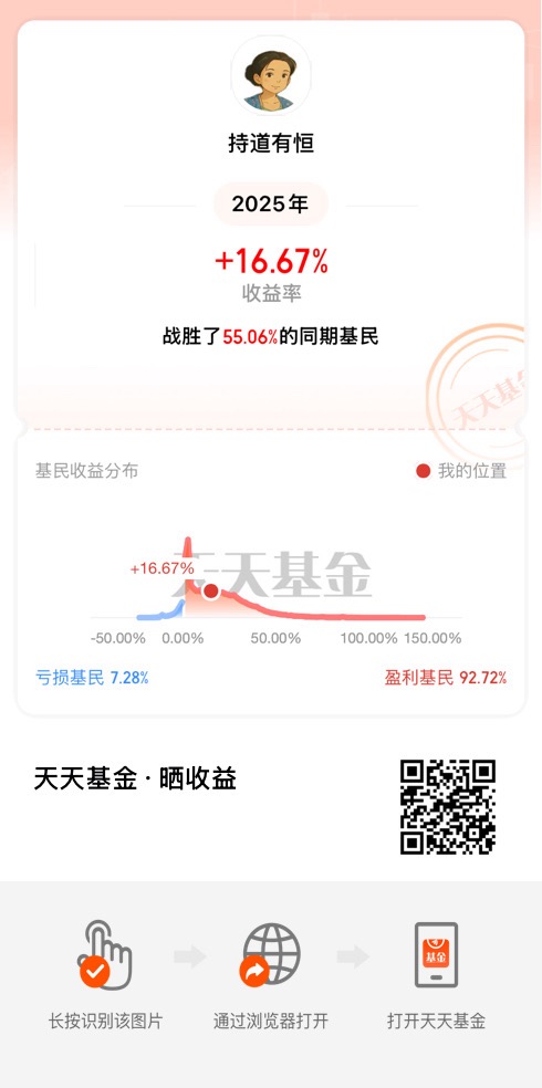 2025年,我的收益率是16.67% ,我的超额关键词是“相信AI”。作为一个在职场和家庭之间穿梭多年的妈妈,这个数字背后,不仅仅是账户余额的增长,更是一段关于认知、耐心与选择的旅程。今天,我想分享的,是一个从迟疑到笃定的故事,主角是我,以及那只让我实现了翻倍收益的基金——$易方达中证人工智能主题ETF联接A(OTCFUND|012733)$。
