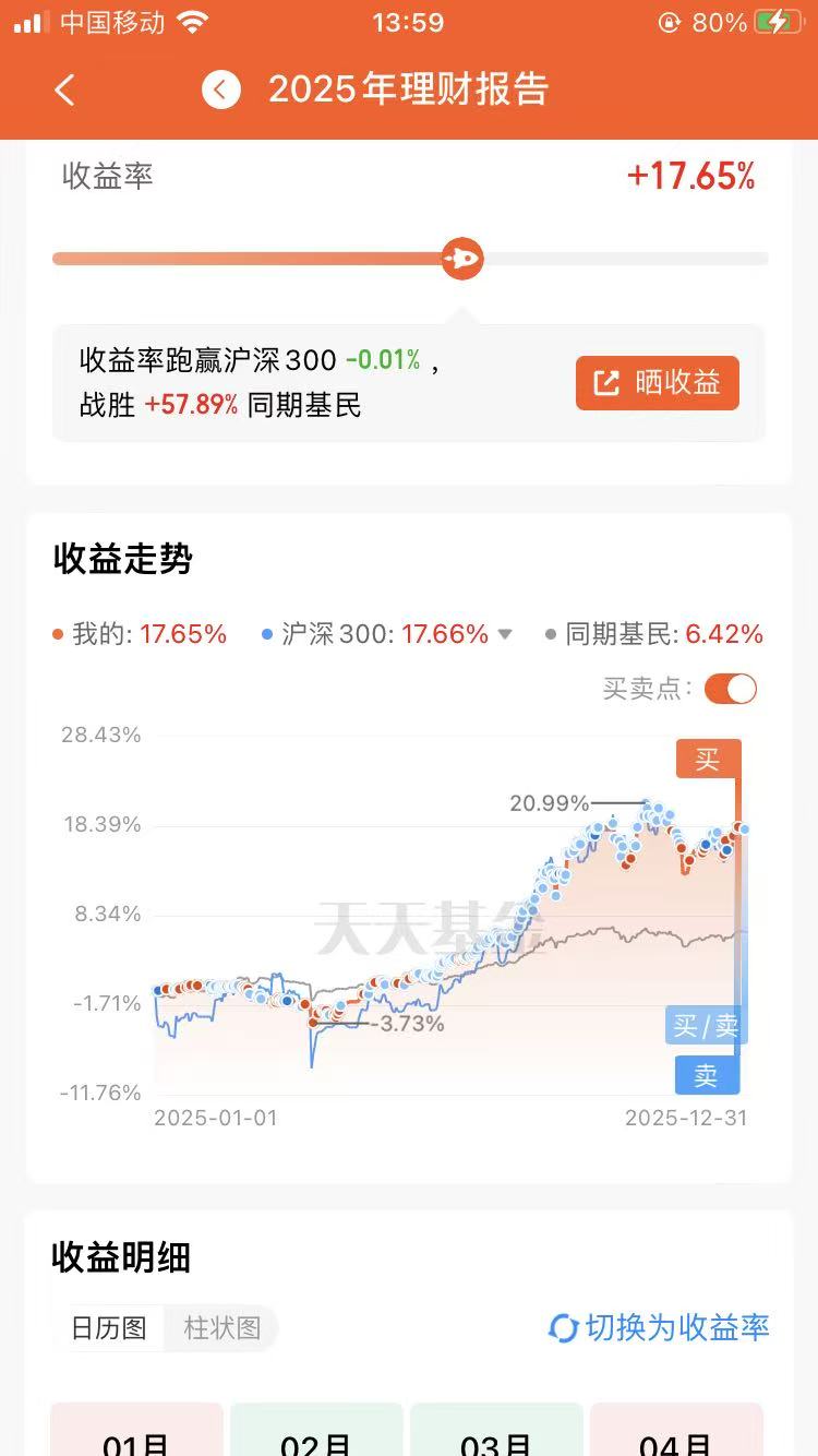 #2025超额关键词##晒收益#2025年,我的收益情况是17.65%,我的超额关键词是均衡配置。回头看,这波收益没靠猜行情、追热点,全凭 “均衡配置” 四个字撑着 —— 把钱分到美股科技、黄金、红利资产和债券基金里,没想到真的扛住了市场的起起落落。