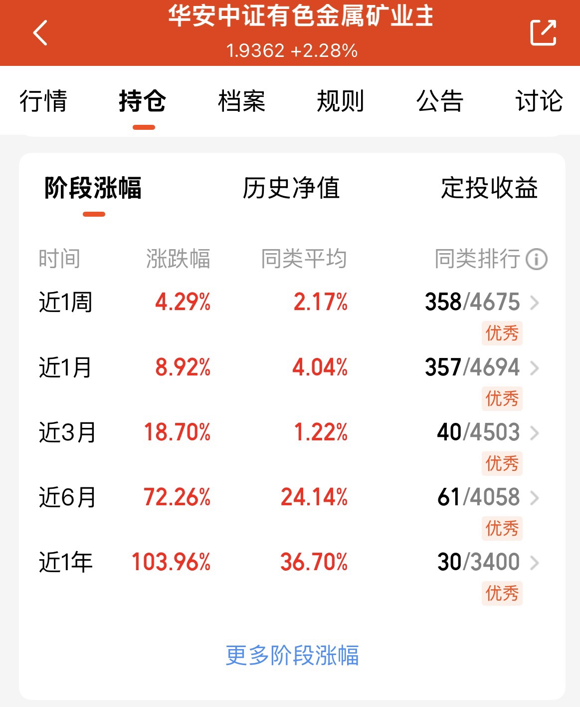 业绩炸裂!$华安中证有色金属矿业主题指数发起式A$单日涨4.26%,近一年超10