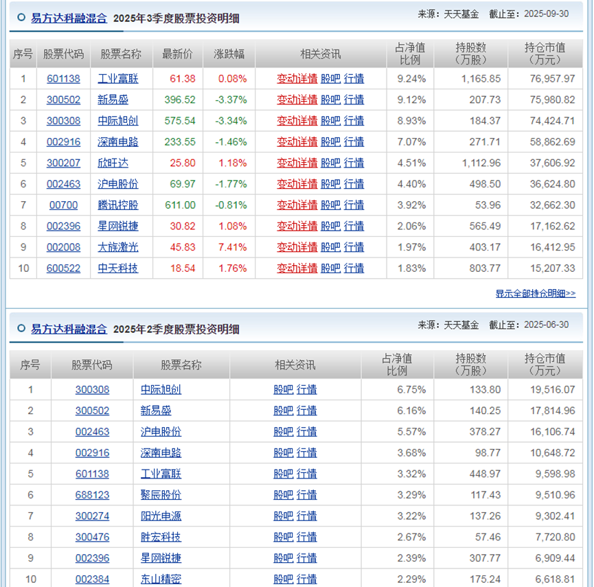 对比2025年2季度与3季度的前10仓股,我们会发现以下一些特点: