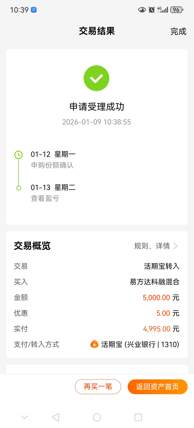 像易方达科融混合 (006533)这样长短期业绩均十分突出的主动基金,我今天偶然发现了,必须建仓,先买入5000元,后续若遇调整,再继续买入。