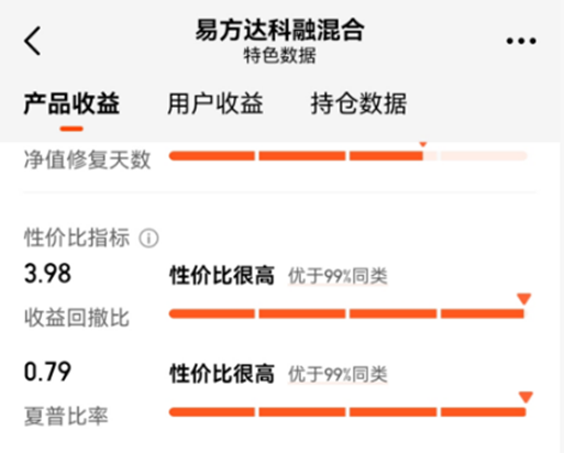 从这只基金近两年的持仓分析,发现刘经理,布局多个热门赛道,科技、新能源、军工轮动配置,调仓相当的成功,有下面来自天天基金APP的性价比指标数据为证:收益回撤比指标3.98,优于99%同类,夏普比率0.798%,优于99%的同类。