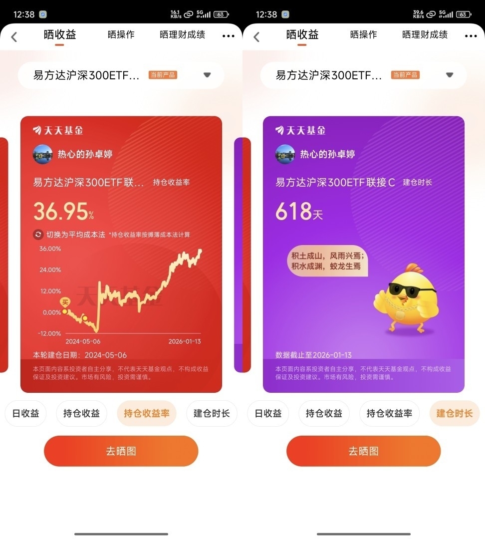 最后,想再次感谢易方达基金的陪伴。它就像一位靠谱的伙伴,用专业的运作和稳健的表现,不负每一份信任。2026年,我会继续持有这两只基金,也会拿出部分收益学习更多理财知识,在守拙中成长,在坚持中收获。