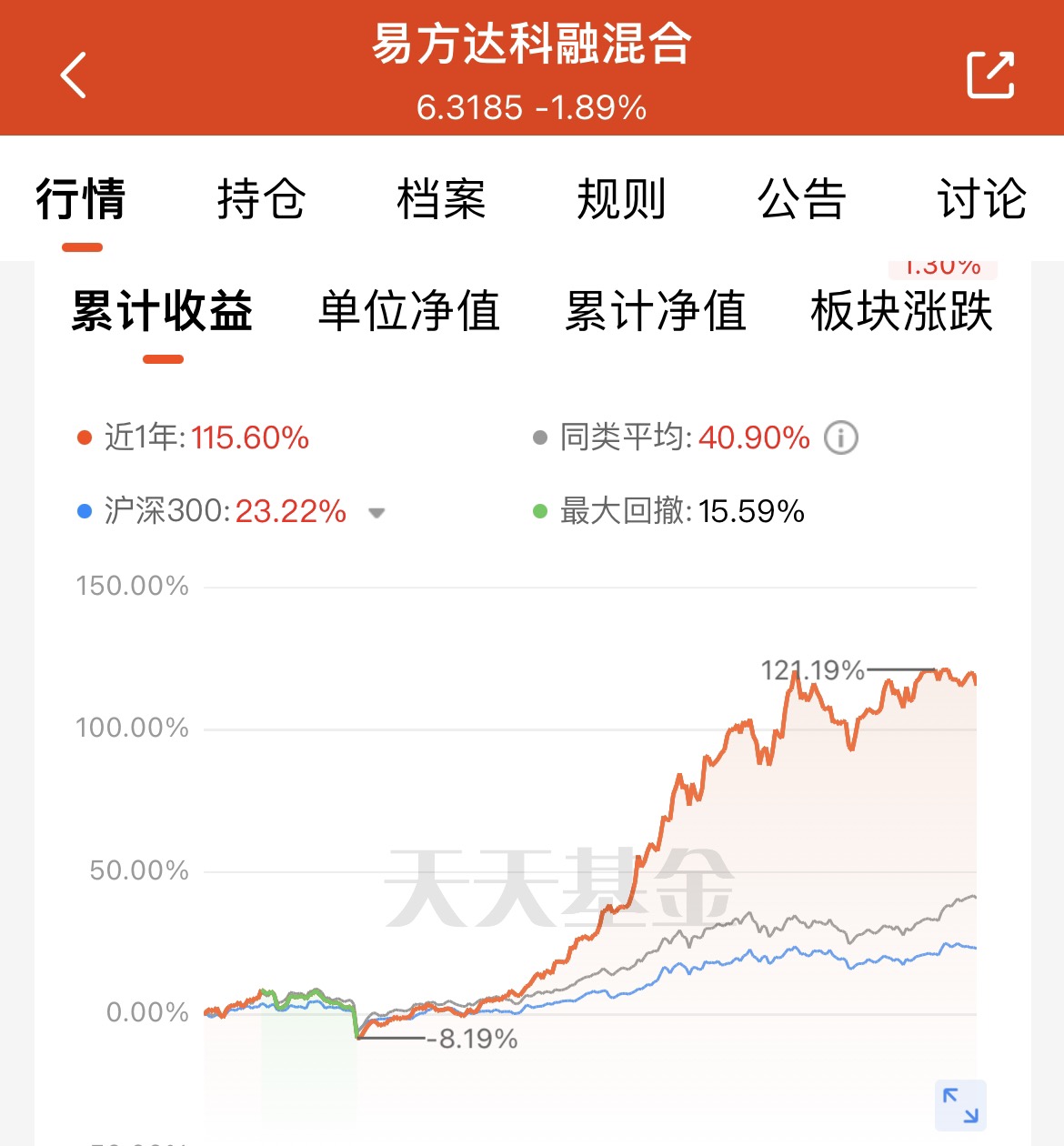 前期热点降温后,资金又重新回到科技板块,市场轮动的节奏很明显。与其追高热点,不如选$易方达科融混合$ 这种均衡配置的基金,它覆盖了通信、电子、新能源、军工这些核心赛道,近一年涨了115.6%,比同类基金强不少。机构持仓占比高,说明资金也很认可,震荡市拿着更安心。