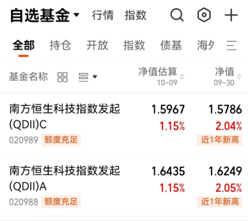 如果觉得AI硬件炒得有点高,那可以看看应用端,恒生科技指数重点覆盖了这个领域。$南方恒生科技指数发起(QDII)A$(020988)基金近一年实现了约40%的收益率。当前市场背景下,几个因素可能构成支撑:估值水平相对合理,宏观层面出现一些积极变化,AI技术商业化不断推进。通过基金投资指数,相当于分散投资于多个相关公司,有助于平滑单一标的波动风险。对于看好数字经济发展前景的投资者,这类产品或许是一个值得考虑的选择。#10月基金投资策略#
