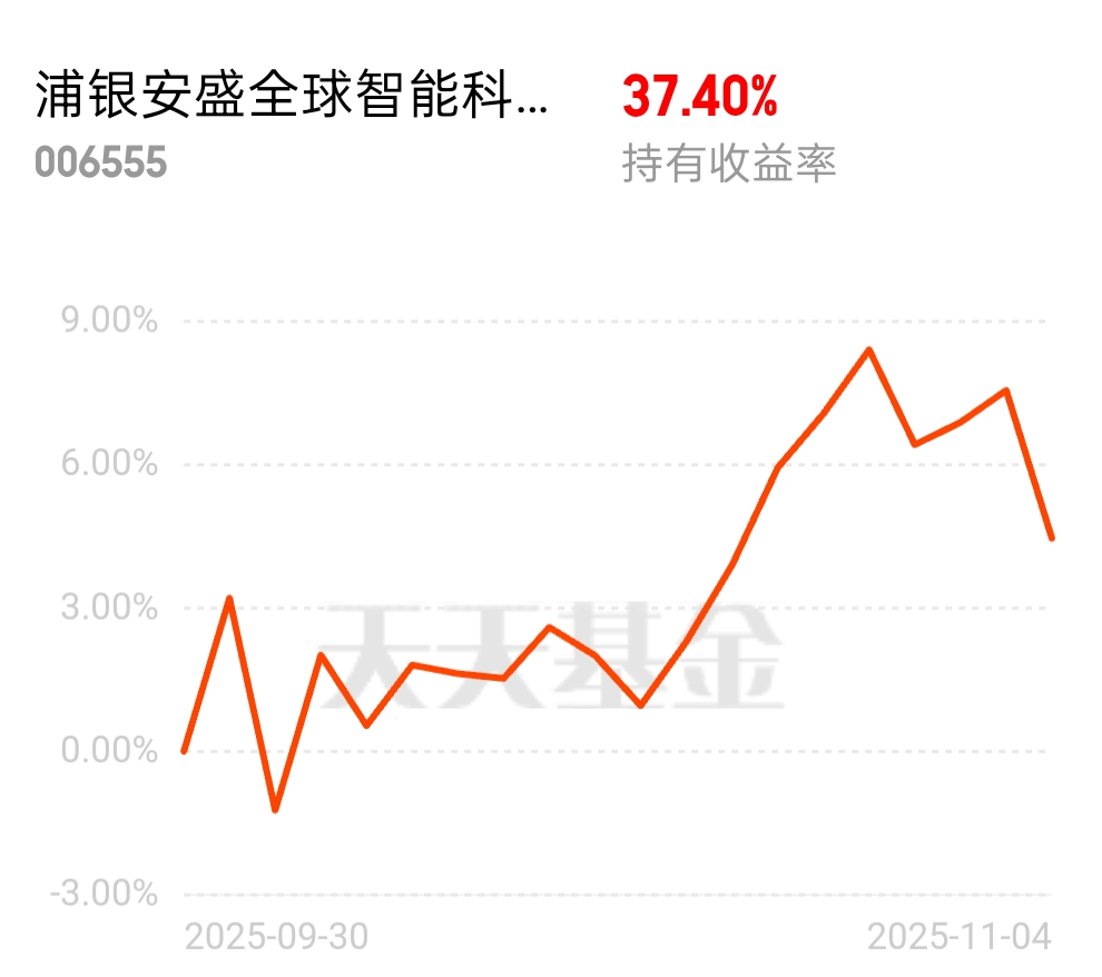 8.63%,比上期季报还提升了1.24%,重仓股里海外AI产业链一条龙都覆盖了$浦银安盛全球智能科技(QDII)C$