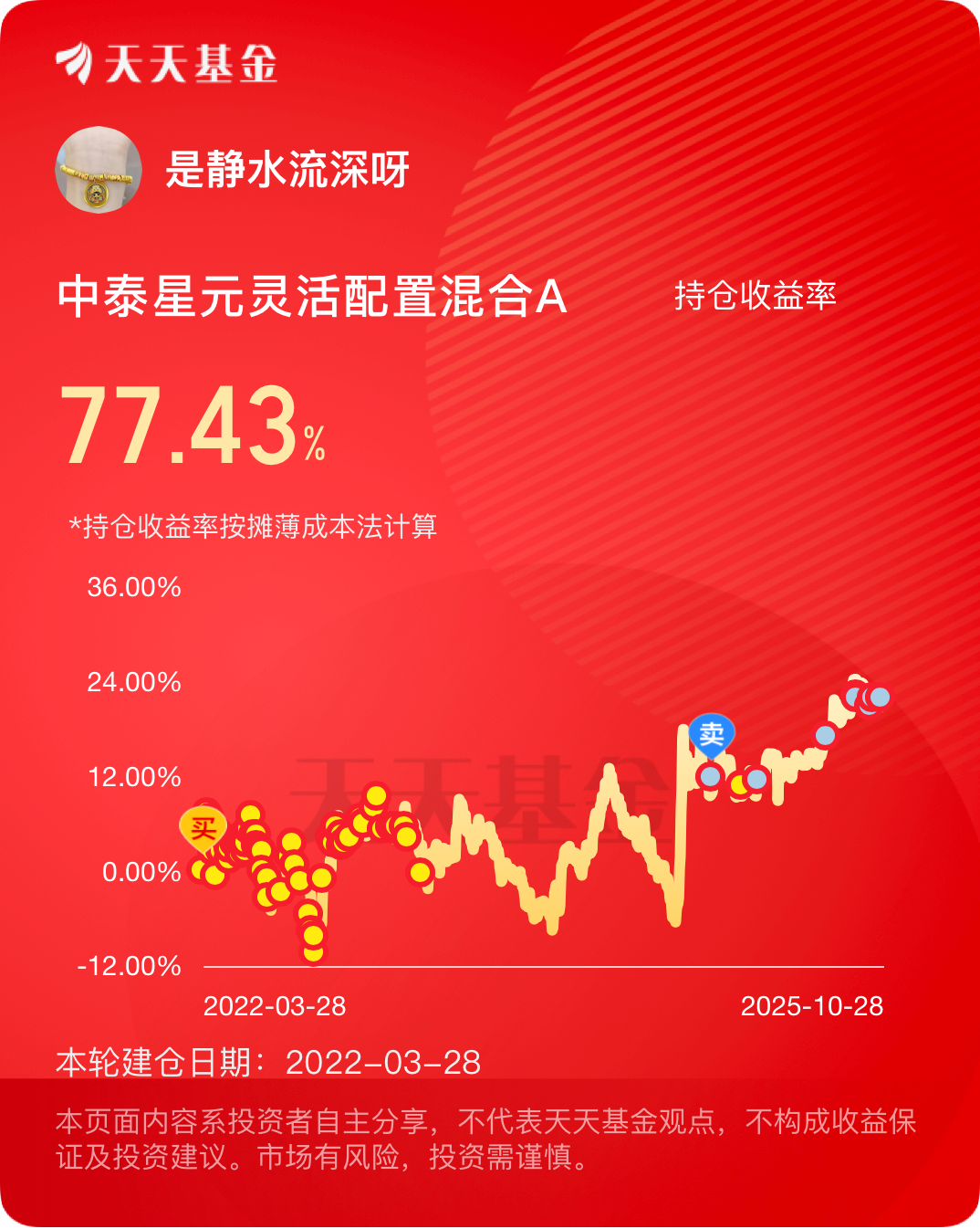 $中泰星元灵活配置混合A$ #晒收益# 先走了 谢谢你哈姜经理 俺还会回来的