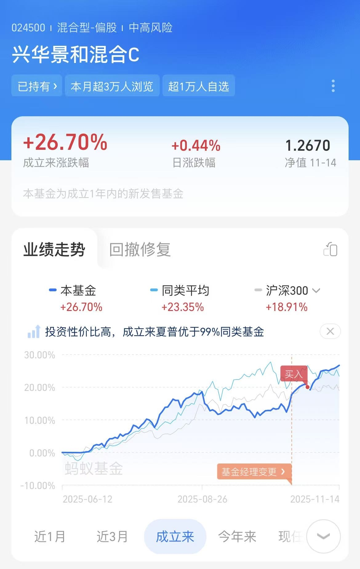 以追求可持续超额收益为核心目标的兴华景和基金,六月到现在实现 26.15% 的投资回报,上周五普跌行情里,它还逆势收涨 0.44%。兴华景和基金专注小微盘价值股领域,把逆向投资和深度研究结合起来,精准挖掘被市场低估的优质资产,效果很明显。