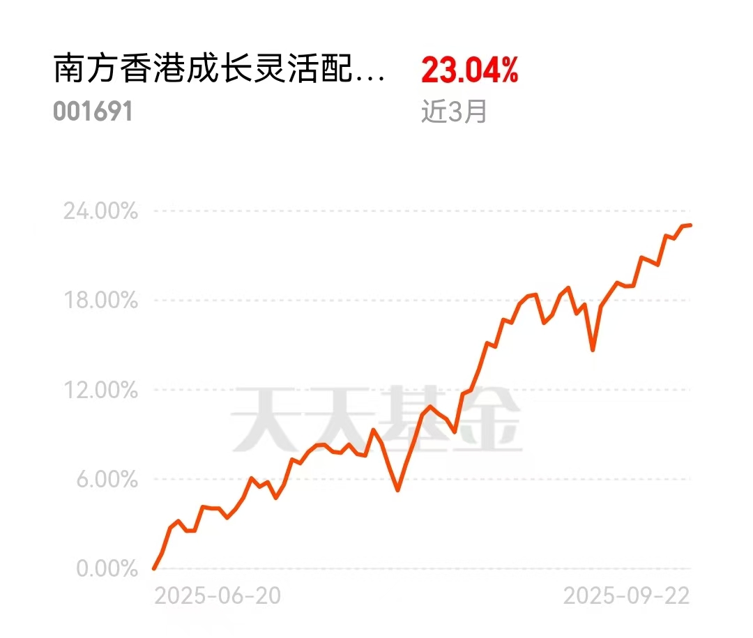 关注港股机会的朋友看过来!$南方香港成长灵活配置混合$(001691)这只基近一年涨了97%多,业绩同类领先!投资港股,看中的是其估值相对较低,以及一些优质公司的长期成长性。南向资金持续流入,也反映了对港股市场的关注。通过基金投资港股,可以借助基金经理的研究能力和投资经验,争取更好地把握港股市场的投资机会。对港股感兴趣但又不太熟悉的,可以考虑这类产品。#“924行情”一周年 你赚了多少?#