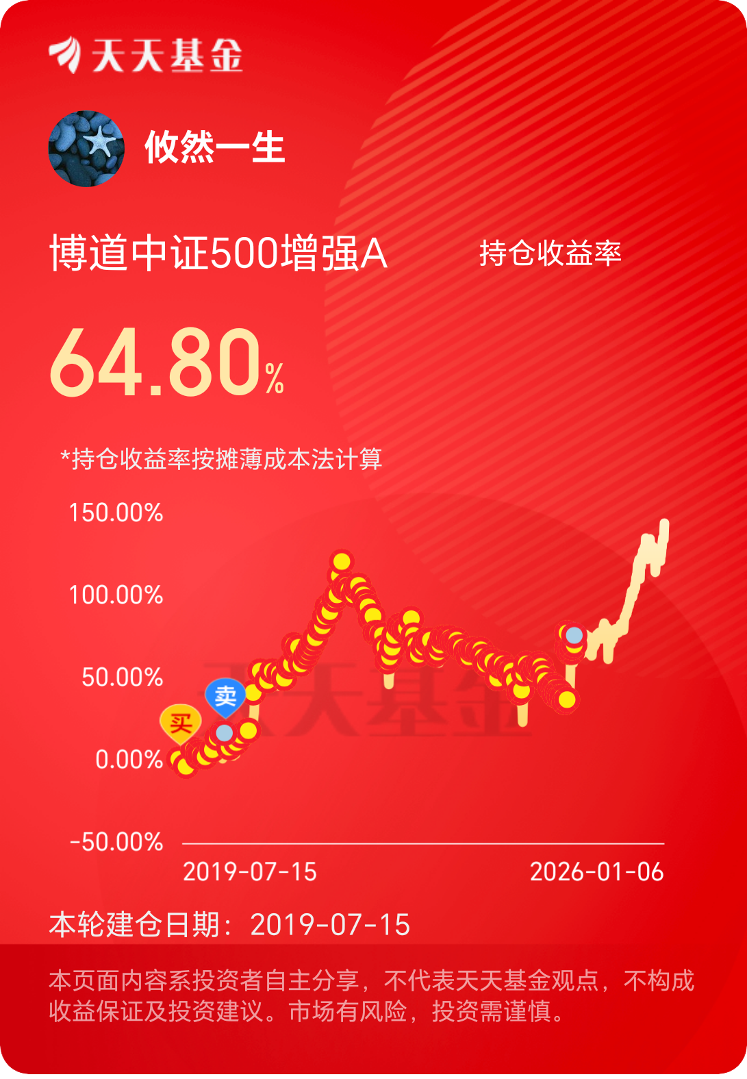 博道中证500增强A,始终坚信你会脱颖而出。历经7年定投,收益稳定!
