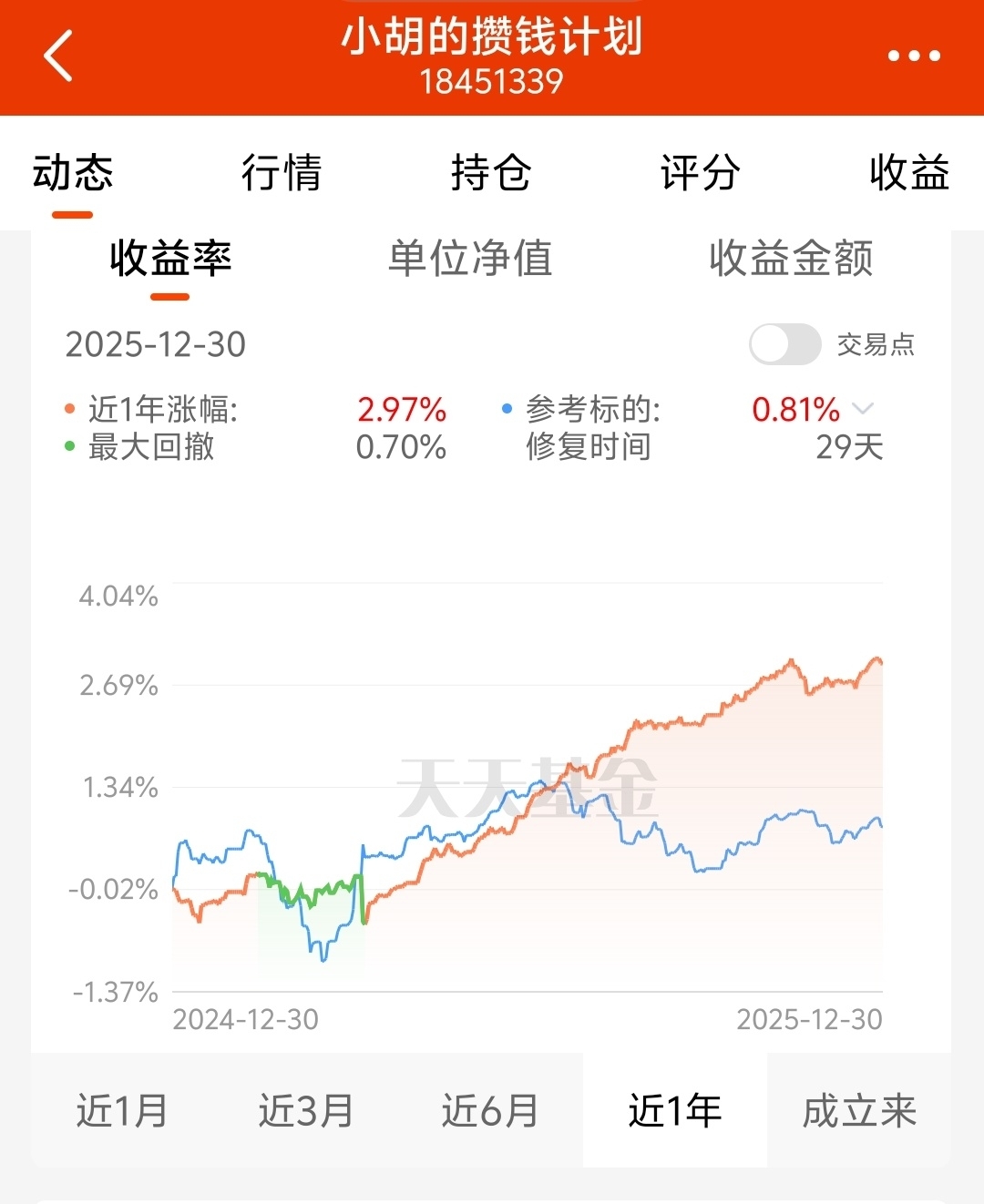 2024年,组合实现了3.60%的收益率,今年基本上3%左右吧。还算稳健吧。