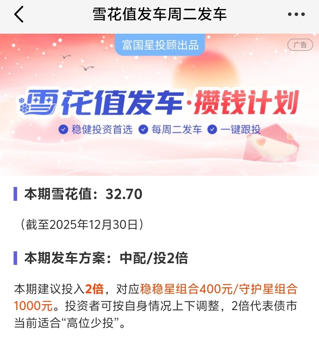 往后看,对于债市,我一直关注着富国基金星投顾每周二发布的债基投资指南指标~雪花值。