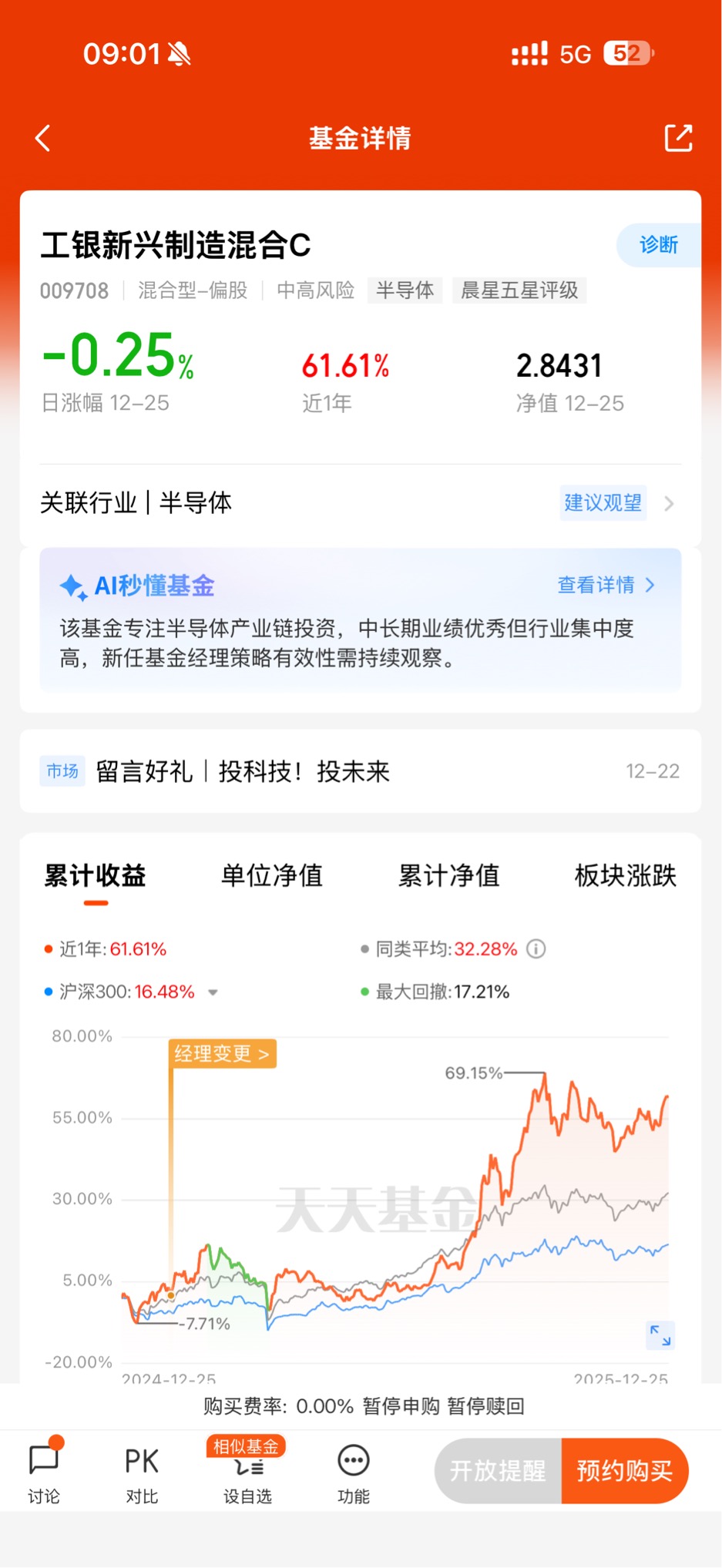 持有这只基金快一年,不仅收获了60%+的收益,更让我明白科技投资的核心是“选对赛道+信任专业”。这只基金没有追逐短期热点,而是坚守战略新兴产业的长期价值,用扎实的业绩证明了“趋势+精选”策略的有效性。在当前市场主线向科技纵深领域转移的背景下,相信随着产业红利的持续兑现,这只基金还会带来更多惊喜。