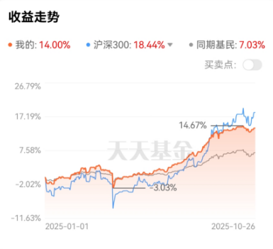 上图是天天基金账户的数据。同期基民的平均收益率,7.03%,这个数据让我得到些许安慰。真相应该是,天天基金的大部分基民,进行了资产配置,有相当一部分投资者重仓了债基。债基在2025年的收益率,基本可以忽略。