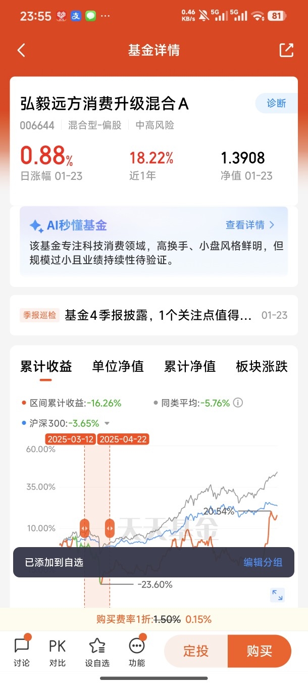 作为弘毅远方消费升级A的持有人,一直关注消费领域的科技赋能,如今身边的AI应用尤其是AI智能体,早已从概念走进日常消费与生活的方方面面,不再是冰冷的技术,而是实实在在提升消费体验、优化生活效率的“智能搭子”,也真切感受到AI正成为消费升级的核心驱动力,这也是我长期看好消费+科技赛道的重要原因。