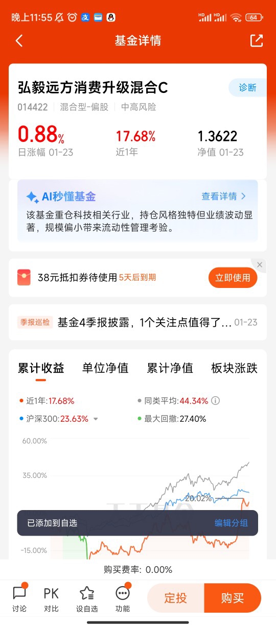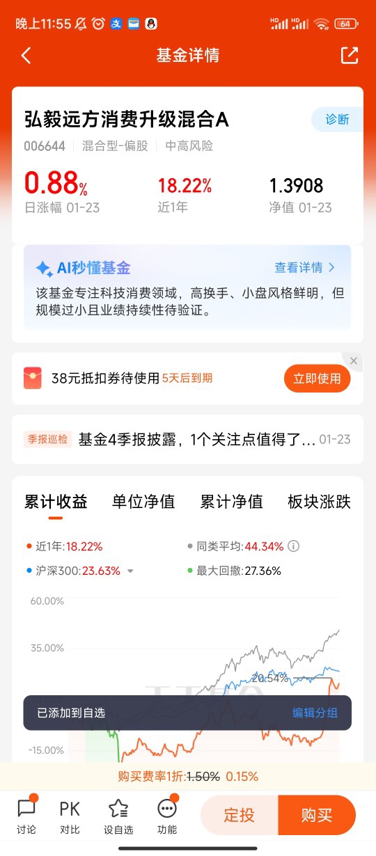 持有弘毅远方消费升级A的这段时间,深刻感受到基金经理对消费趋势的精准把握。在AI驱动消费变革的浪潮中,这只基金既能捕捉传统消费的升级红利,又能挖掘新兴智能消费的成长潜力,是普通人分享#AI智能体# 赋能消费升级的优质工具。相信随着更多AI应用场景的落地,消费升级赛道将迎来更广阔的发展空间,与弘毅远方消费升级A一起,见证科技为生活带来的更多美好改变!$弘毅远方消费升级混合A$