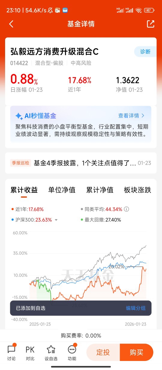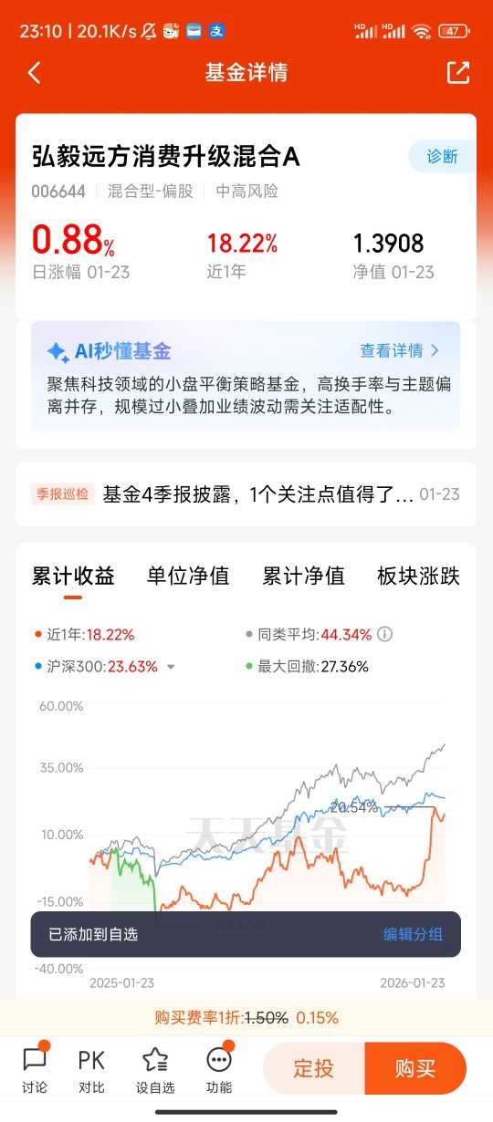 这些场景背后,是AI对消费升级的深度赋能——它让供需匹配更精准,让服务体验更贴心,也催生了更多新型消费需求 。弘毅远方消费升级A聚焦消费领域的创新变革,正好能捕捉AI应用带来的产业红利。跟着这只基金布局,不用费心筛选个股,就能一键分享AI重塑消费生态的成长机会,这才是普通投资者把握趋势的省心之选!@弘毅远方基金