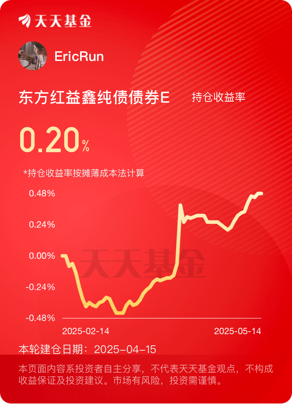 市场不好说,稳健一点没错的,我买的$东方红益鑫纯债债券E$ #晒收益#
