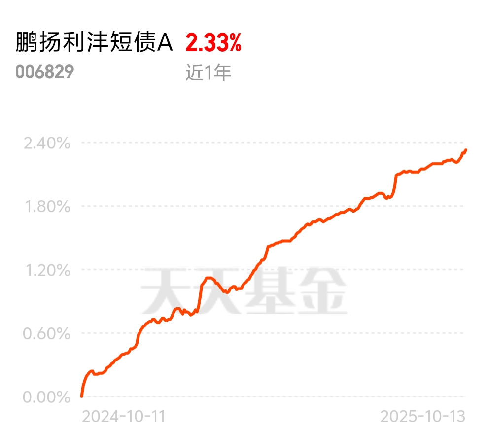 宝宝类产品收益率有点低,为了保证资金的灵活性,我买了宝宝+$鹏扬利沣短债A$,回